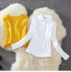 2017春季新款女装韩版简约长袖衬衫女上衣针织背心马甲毛衣两件套