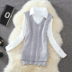2017春装新款女装韩版修身波浪边吊带针织纯色长袖衬衫女两件套潮