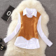 韩都家2017春装新款针织背心马夹毛衣+翻领长袖衬衫时尚两件套女