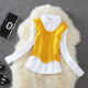 毛衣马甲女2017春装韩版新款V领针织马夹+翻领衬衣两件套女针织衫