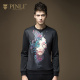 PINLI品立 秋装时尚男装巴洛克刺绣套头卫衣男外套5070鐨