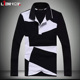 春装男翻领男士长袖t恤黑白拼接大码男T血上衣体恤桖潮牌男装衣服