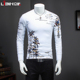 夏季男士长袖t恤中国风蝴蝶印花圆领体血桖衣服男打底衫潮牌男装