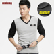 冬季新款修身V领加绒T恤男 保暖内衣加厚加绒打底衫男装