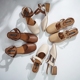 拖鞋女夏2017新款韩版时尚外穿粗跟中跟鱼嘴复古一字拖简约防滑鞋