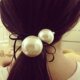 韩国进口新款小香风大珍珠双球发圈丝带蝴蝶结发绳系带发饰皮筋