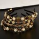 韩国发饰欧美宫廷DG头箍树叶珍珠镶钻金属发箍巴洛克复古钱币发卡