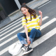 条纹短袖T恤女宽松大码上衣女夏2017新款韩版学生百搭胖MM夏装女