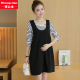 孕妇春装韩版长袖连衣裙套装 潮妈宽松大码条纹T恤背带裙两件套女