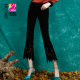 惑色弹力牛仔裤2017春季新喇叭裤女九分裤韩版毛边显瘦流苏微喇裤