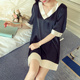 韩版真丝睡裙女春夏季短袖薄款桑蚕丝绸衬衫睡衣女秋性感冰丝裙子