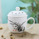 乐活骨瓷杯泡茶杯个人水杯430ml带盖杯子中国风水墨兰草礼盒装