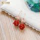 千色新娘美汐红色玫瑰花朵新娘耳环水钻结婚耳针饰品礼服配饰耳坠