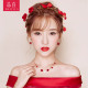 2017新款韩式新娘饰品项链耳环头饰套装红色三件套结婚敬酒服发饰