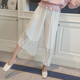 2017春装新款韩版雪纺蕾丝拼接阔腿裤女高腰九分裤百褶休闲裤子潮