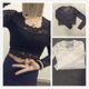 春装新款镂空内搭短款修身上衣百搭圆领小衫半截长袖打底蕾丝衫女
