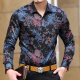 蓝色剑鱼 春装新款棉质男装长袖衬衫中年男士印花商务休闲花衬衫