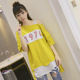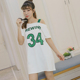 2017夏季新款宽松字母开叉白色中长款短袖t恤女大码打底衫连衣裙