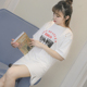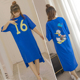 夏装超长款数字印花休闲短袖t恤裙宽松过膝侧开叉连衣裙韩版体恤