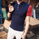 英伦夏季修身个性百搭T恤男装休闲撞色翻领条纹短袖POLO衫韩版潮
