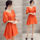 夏季新款五分灯笼袖橙色连衣裙甜美宽松腰大摆型套头短裙女送腰带