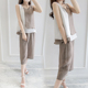 欧洲站2016新款夏季女装两件套大码背心阔腿裤七分裤时尚棉麻套装