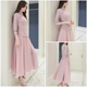 2017春夏新款名族风粉色五分袖上衣两件套气质复古名媛连衣裙套装
