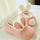 粉色波点秋冬女立体小兔子耳朵球球尾巴包跟家居鞋地板鞋