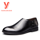 意尔康商务皮鞋2017四季鞋尖头软底真皮休闲鞋男士金属搭扣舒适