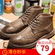 热闹客男士英伦高帮休闲皮鞋潮流板鞋复古雕花短靴子春季系带男鞋