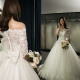婚纱礼服2016新款秋冬季一字肩中袖蕾丝显瘦齐地长拖尾白色婚纱女
