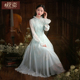 筱姿亭亭烟 2017新款春季复古女装小立领修身绣花连衣裙长裙旗袍