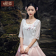 筱姿香满襟 2017春季新款绣花复古女装修身侧开叉雪纺衫女上衣