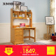 喜梦宝松木书桌电脑桌实木组合家具带书架简约储物办公桌写字桌子