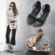 2017夏新款平底凉鞋女百搭绑带鞋粗跟罗马凉鞋女平跟韩版潮鱼嘴鞋