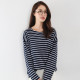 长袖T恤女 春秋女装宽松纯棉体恤条纹衫上衣韩版大码显瘦打底衫潮