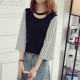 短袖T恤女 夏季宽松显瘦学生半袖上衣韩版新款黑白条纹大码打底衫