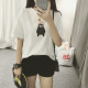 16夏天新款韩版短袖女上衣学院风 韩国宽松百搭卡通小猴子T恤女