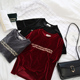韩国字母印花修身显瘦金丝绒加厚百搭短袖圆领T恤打底衫半袖T上衣