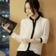 迪欧琳2016春新品女韩式气质白搭衬衫OL职业衬衣黑白拼色简约衬衫