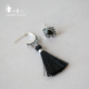 S925泰银韩国不对称黑玛瑙流苏耳环耳钉民族风复古女长款个性饰品