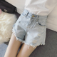 牛仔短裤女春季2017新款夏天韩版显瘦浅色高腰破洞学生毛边热裤潮