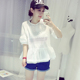 2017夏装新款小清新韩版娃娃衫镂空上衣短袖韩国衬衫棉宽松衬衣女