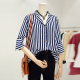 条纹衬衫女宽松BF4-2春季新款2017韩版七分袖V领雪纺衫衬衣