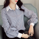 太阳屋AH1-2春季新款2017韩版女装钉珠翻领荷叶边条纹衬衫女长袖