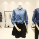 太阳屋Y5-5春季新款2017韩版女装POLO领牛仔衬衫纯色长袖打底上衣