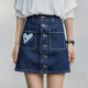刺绣牛仔裙女I2-3夏装新款2017韩版女装排扣半身裙a字裙短裙子