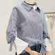 太阳屋CC1-4春季新款2017韩版女装蝴蝶结喇叭袖条纹衬衫宽松衬衣