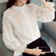 白衬衫女长袖CA3-4春装新款2017韩版女装镂空刺绣立领修身衬衣