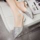 女式夏季韩版扣带水钻银色亮片金色高跟鞋鱼嘴鞋子粗跟凉鞋潮